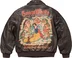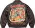Lambskin leather with satin lining and full zip closure. Snap flap patch pockets at lower front with dual top and side entry. Interior chest pockets. Hidden snap closures at collar with knit rib cuffs and hem. Hand-painted graphic on back by Nicholas Gamarello. Made exclusively for Supreme.