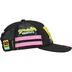 All cotton chino twill 6-Panel hat with mesh back and snap closure. Embroidered graphics on front, visor, sides and back. Woven logo patches on back.