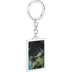 Metal keychain with lenticular graphic and debossed logos at back. 1" keyring. 2.2". Made in Italy.