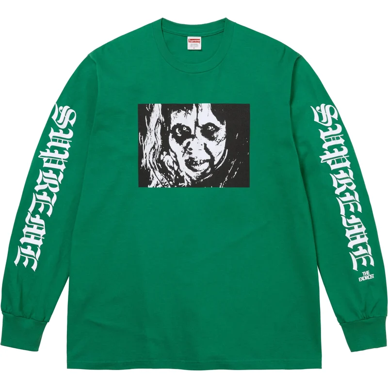 All cotton classic Supreme long-sleeve t-shirt with printed graphic on front and back. Printed logos on sleeves.