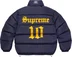 Water resistant poly with down insulated quilted baffles and nylon lining. Full zip closure with hidden snap placket. Zip hand pockets at lower front and interior zip pocket. Interior elastic shockcord at packable hood and hem with elastic cuffs. Embroidered logos on chest, sleeves and back neck. Woven patch on chest. Tackle twill appliqué at lower front and back.