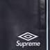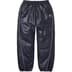 Lambskin leather with mesh and taffeta lining. Welt zip hand pockets and single back zip pocket. Elastic waistband with interior leather drawcord and interior elastic shockcord at cuffs. Embroidered logo at thigh.