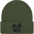 Acrylic cuffed beanie with embroidered graphic on front cuff and embroidered logo on back cuff.