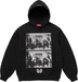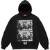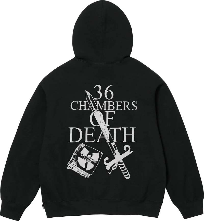 Heavyweight brushed-back fleece with pouch pocket. Printed graphic on front and back. Embroidered logo on hood.