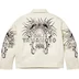 Cowhide leather with jacquard logo viscose lining. Full zip closure with double welt zip hand pockets at lower front. Zip chest pocket and interior snap pockets. Debossed logos at chest and lower front. Printed graphic on sleeves and back. Original artwork by Joe Chatt.