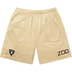 Poly jersey with jacquard knit logo pattern. On seam hand pockets and single back zip pocket. Embroidered and printed graphic on thighs.