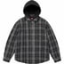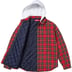 All cotton flannel with brushed-back fleece hood, fill and quilted taffeta lining. On seam hand pockets at lower front with patch pockets at chest. Embroidered logo on left pocket.
