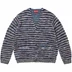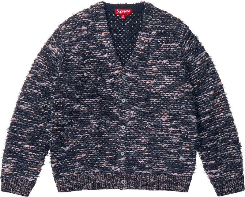 Textured knit wool blend with button front closure and welt hand pockets at lower front. Embroidered logo at left pocket. Fabric made in Italy.