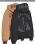All cotton canvas with 3M® Thinsulate™ insulation, quilted cotton poplin lining and quilted taffeta sleeve lining. Full zip closure with pouch pocket at lower front and interior chest pocket. Knit rib cuffs and hem. Printed graphics on hood and back with rhinestone applique. Embroidered logo patch at lower front.