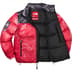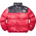 Water resistant, breathable poly ripstop with trompe l’oeil printed graphic and 700-Fill down insulated interior quilted baffles. Full zip closure with zip hand pockets at lower front and interior zip pocket. Interior elastic shockcord at hem with velcro tab adjusters at elastic cuffs. Printed logos at chest, back shoulder and sleeves. Jacket packs into right hand pocket. Made exclusively for Supreme.