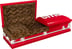 Durable 20-gauge steel casket finished with high-gloss paint and painted logo. Custom leopard faux fur interior. Sculpted steel hardware, adjustable bed, and reinforced stationary handles. Full rubber gasket and lock. 84" × 29" × 23". 180 lbs. Made in the USA.
