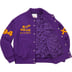 Wool blend with fill and quilted satin lining. Snap front closure with welt hand pockets at lower front and interior chest pocket. Knit rib collar, cuffs and hem. Chainstitch embroidered logo on chest. Felt and chenille appliqué at chest, sleeves and back. Original artwork by Cactus Plant.