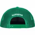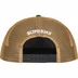 Poly 5-Panel hat with mesh back and snap closure. Embroidered graphic on front and embroidered logo on back.