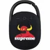 Waterproof portable speaker with integrated carabiner clip and rubber graphic. Wireless Bluetooth® streaming and up to 10 hours of battery life. 3.4" x 5.3" x 1.8". Made exclusively for Supreme.