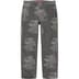 All cotton 14 oz. denim with jacquard woven logo pattern and baggy fit. Classic 5-pocket style with zip fly, single coin pocket, copper oxide rivets and embroidered logo on back pocket.