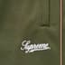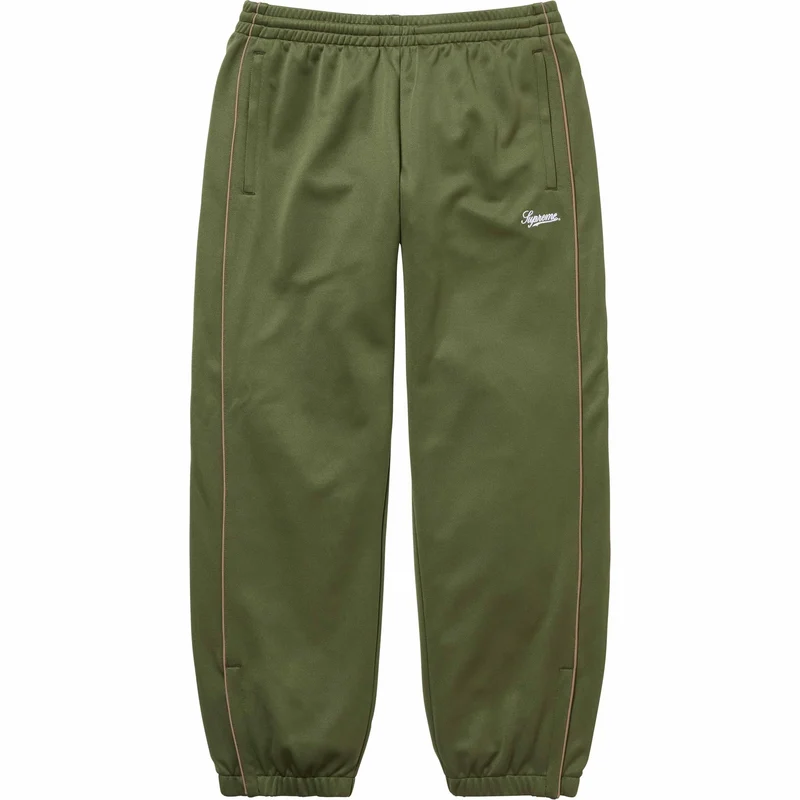 Poly tricot with welt hand pockets and welt zip back pockets. Elastic cuffs and waistband with interior drawcord. Embroidered logo on thigh.