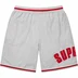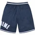 Ultrasuede mesh with poly mesh lining. On seam hand pockets and single back zip pocket. Knit rib waistband with interior drawcord. Tackle twill logo appliqué at side.