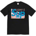 All cotton classic Supreme t-shirt with printed graphic on front and printed logos on back hem.