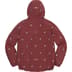 Water resistant nylon ripstop with embroidered pattern, mesh lining and taffeta sleeve lining. Full zip closure with zip hand pockets at lower front. Interior elastic shockcord at fixed hood and hem with elastic cuffs.