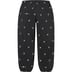 Water resistant nylon ripstop with embroidered pattern, mesh and taffeta lining. On seam hand pockets and single back zip pocket. Elastic waistband with interior drawcord and interior hanging key pocket. Interior elastic shockcord at cuffs.