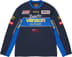 All cotton jersey with poly mesh panels, embroidered logo patches, embroidered graphics and embroidered logo appliqué.
