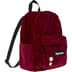 Nylon with velvet flocking and cotton ripstop lining. Main zip compartment and front zip pocket. Woven logo label at front. Metal pin and pinback button included. 16.2" x 14.2" x 8.3". 25L.