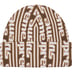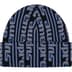 Acrylic cuffed beanie with jacquard knit logo pattern.