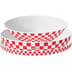 7-piece porcelain dinner set with stackable construction. Includes one round serving platter (9.5" diameter); two flat bowls (21 oz.), two bowls (17 oz.); and two dinner plates (9.5" diameter). Made in Germany exclusively for Supreme.