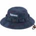 All cotton canvas boonie with cotton cord closure and leather cord stopper. Woven logo label at front.