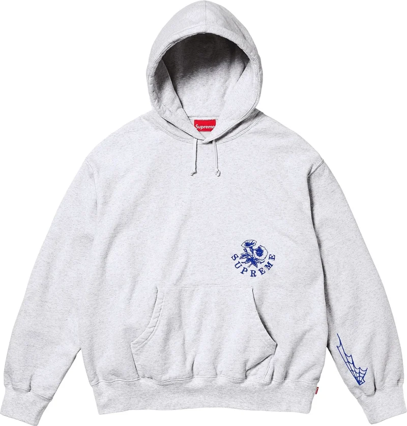 Brushed-back fleece with pouch pocket. Embroidered graphic at pocket, sleeve and back. Original artwork by Weirdo Dave.
