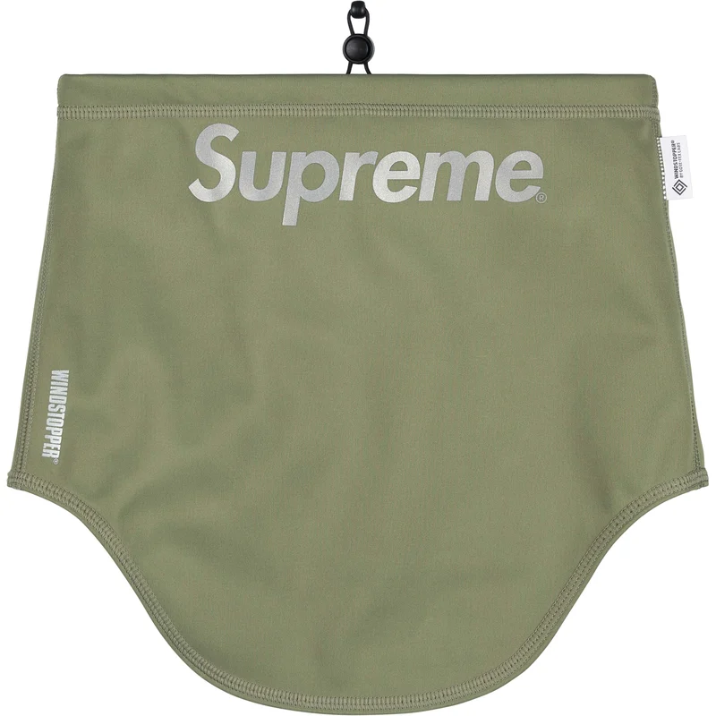 Water resistant GORE® WINDSTOPPER® poly neck gaiter with fleece bonded backing. Interior elastic shockcord at opening. 3M® Reflective printed logos at front.