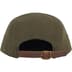 Supreme camp cap made from Loro Piana® wool fabric. Custom debossed leather strap closure.