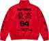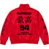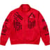 Japanese poly tricot with flocked graphic. Full zip closure and welt zip hand pockets at lower front. Knit rib cuffs and hem. Embroidered logo on chest.