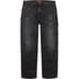 Japanese washed cotton denim with hand-applied distressed treatment. Utility style with zip fly, double knee, single coin pocket, copper oxide rivets, utility pockets and hammer loop at left leg with woven logo taping. Made in Japan.