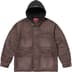 Japanese washed cotton canvas with hand-applied distressed treatment and button front closure. Patch pockets at lower front with dual top and side entry. Button patch pockets at chest. Brushed-back fleece hood with embroidered logo. Made in Japan.