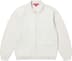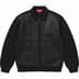 Wool blend with woven lambskin leather and suede front panel. Full zip closure with welt hand pockets at lower front. Embroidered logo on left hand pocket.
