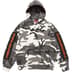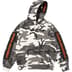 Brushed-back fleece with pouch pocket. Woven logo patches at sleeves and interior hood.